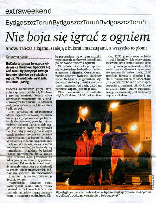 This project resulted in a series of djembe drum workshops and performance art workshops (Māori poi) for local youth in my hometown Bydgoszcz, Poland. Through making dance and music workshops, our group of performers provided the opportunity for children and youth to learn new ways of expressing themselves. This one-year project resulted in the series of performances widely available for the citizens of Bydgoszcz.
